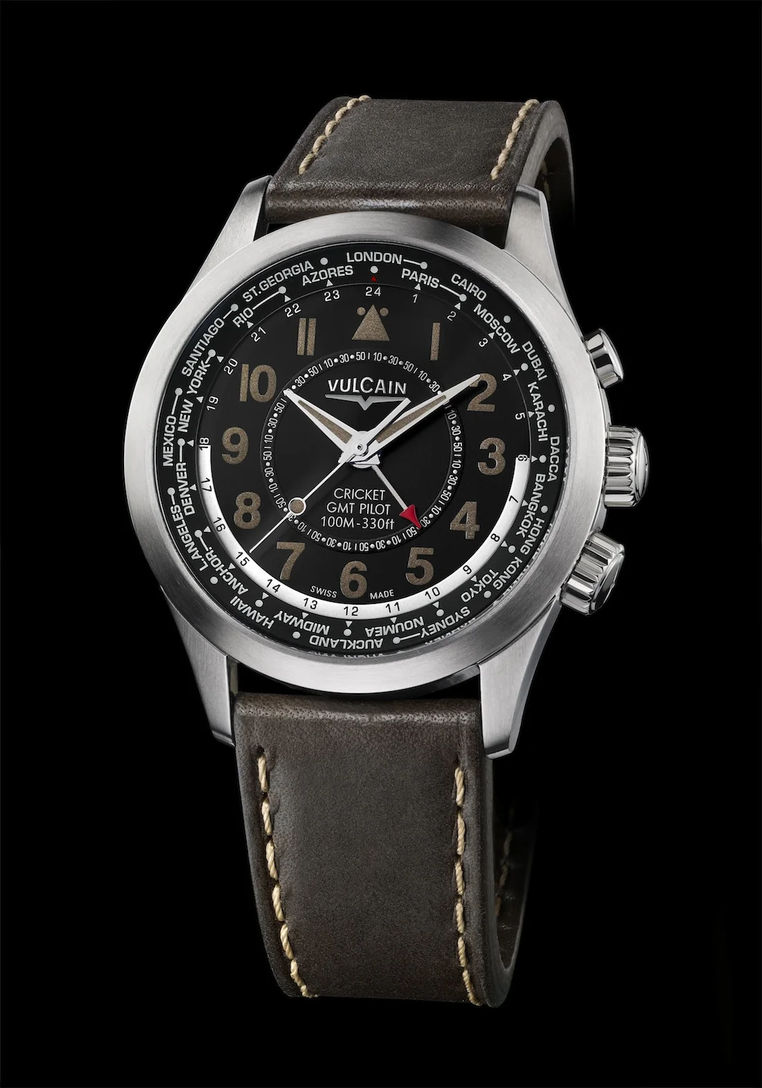 The Aviator GMT Pilot combining its famous mechanical alarm movement with a 24-hour worldtime display.