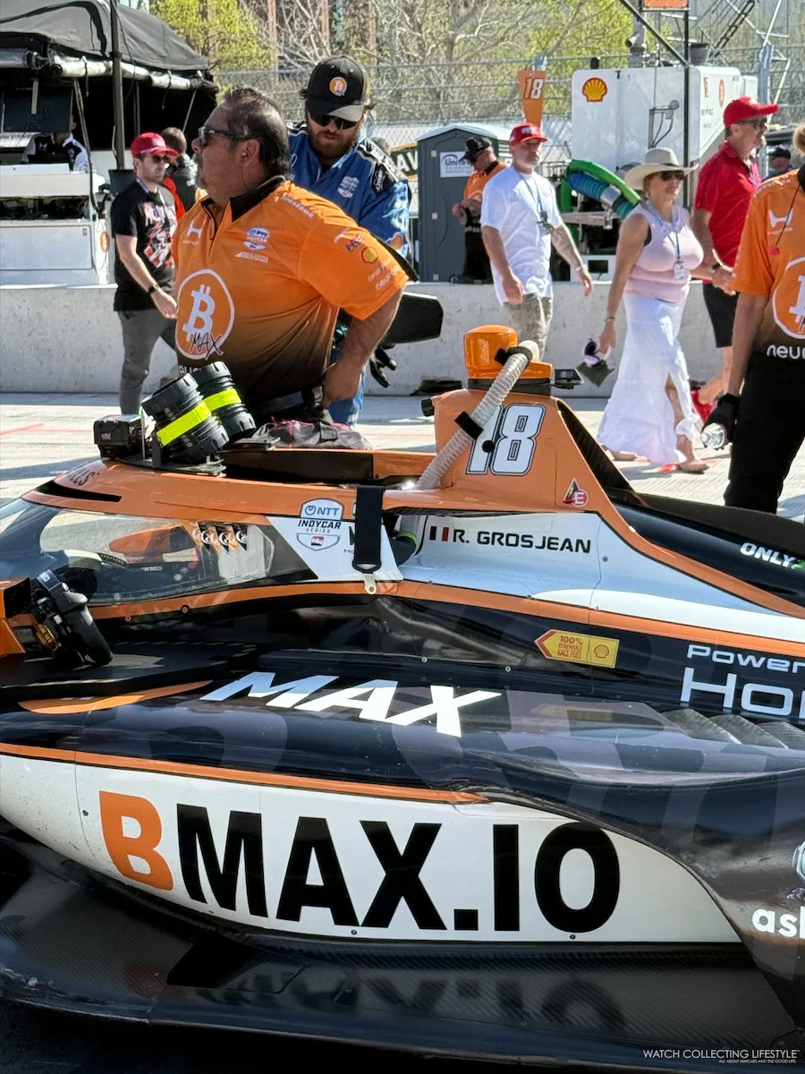While walking through the paddock area, we had the pleasure of meeting Formula One veteran Romain Grosjean, who was competing in the No. 18 BMax Dale Coyne Racing Honda. Grosjean was gracious with his time, and as watch enthusiasts do, the conversation quickly turned to what was on each other's wrists.