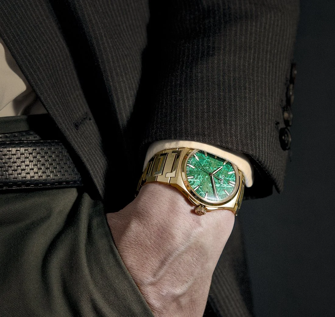 Perhaps most intriguing is the Green Meteor, sourced from the same Gibeon meteorite that has provided material for other luxury timepieces, but here treated with a translucent green lacquer that creates unprecedented depth and visual texture.