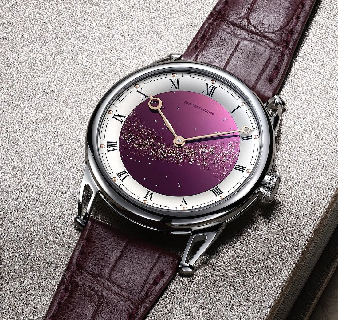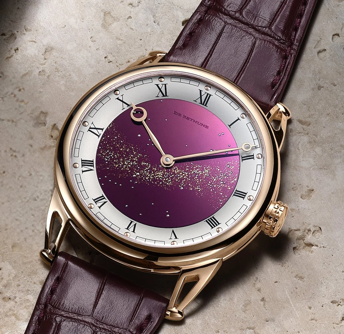 Few watch manufactures dare to reimagine the very essence of time display with the audacity and technical mastery that defines De Bethune. The Swiss maison's latest creation, just presented at GWD—Geneva Watch Days 2025—is the new DB25Vxs Starry Varius, featuring a 40 mm case, two different versions in different metals, and a burgundy-colored dial. This piece transforms the wrist into a window to the cosmos itself.