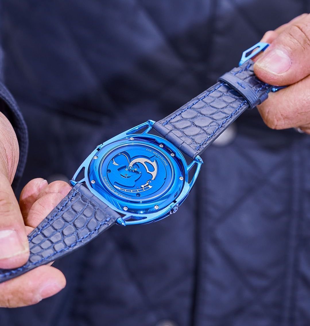 The DB28XP Kind of Blue is the natural evolution of two iconic models from De Bethune: the DB28XP and the DB28 Kind of Blue. It embodies the best of both worlds by combining the sleek design and refinement of the DB28XP with a completely blue look, inspired by the DB28 Kind of Blue and bearing the Manufacture's signature. Here, it's all about levels of interpretation, relief, and the interplay of light with shadows and reflections. Crafted from blued titanium, the watch reveals an architectural fusion of space, time, and light at first glance. Its deep and luminous blue is achieved through the natural oxidation of the material, making each watch a unique work of art.
