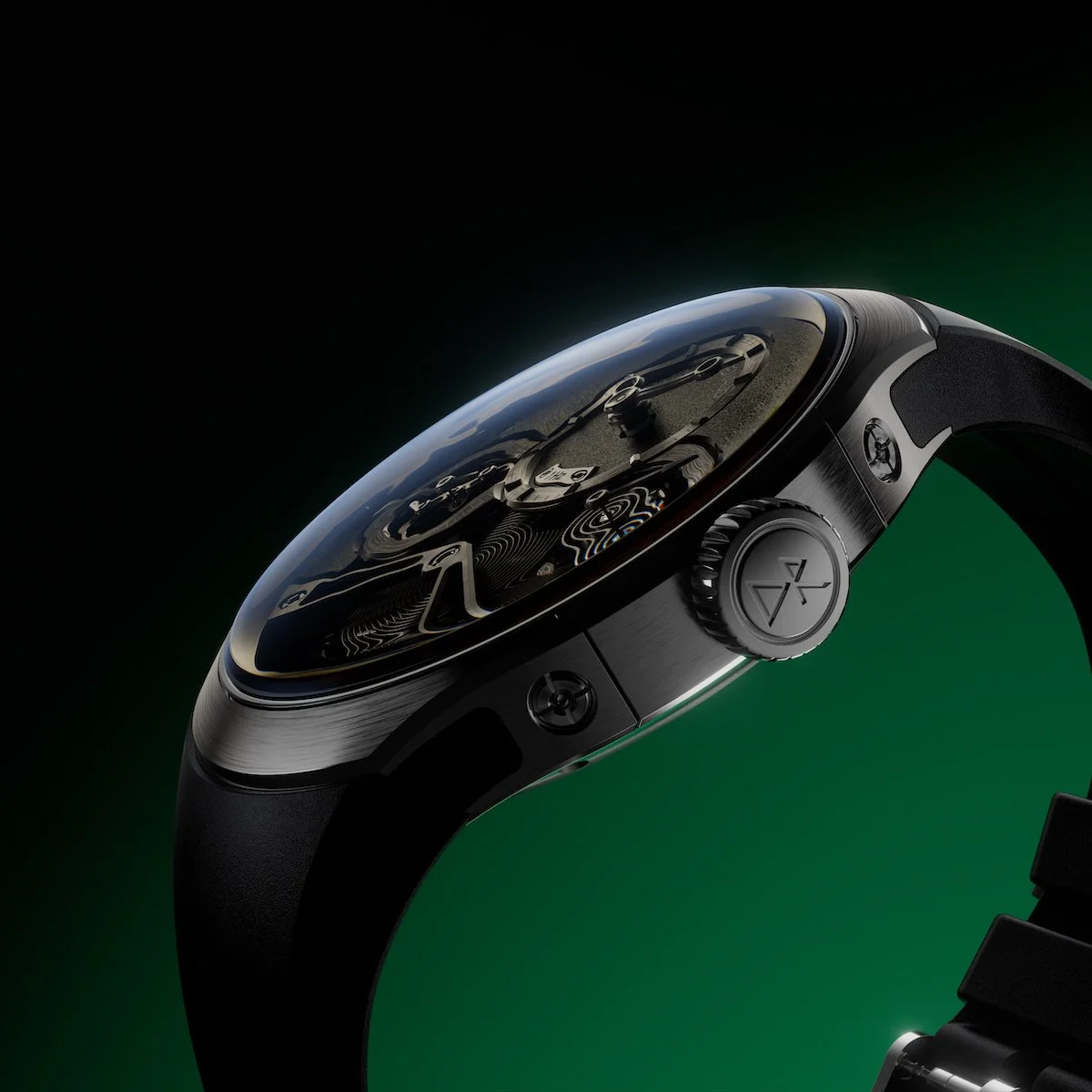 The Pulse60's case follows the same contrarian logic as its movement: strip away convention and see what remains when function dictates form. No lugs. No visible bezel as it disappears under a domed sapphire crystal with anti-reflective treatment. The three-part construction integrates the strap attachment directly into the case sides, creating a continuous line from wrist to dial.