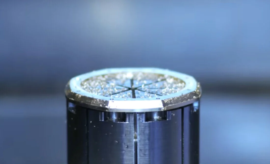 The brass dial is engraved by a burin —a precision metalwork chisel— that reproduces the motif on a disc attached to the machine, like a pantograph. A pointer rotates across the disc from the periphery to the center. The system is combined with a tool that forms the little lozenges between the pyramidal squares and takes between 20 and 50 minutes, depending on the dial's diameter. It's a delicate operation. A mere skip is all it takes to damage the piece as the slightest impact is as visible as dust on a mirror. Here's a video courtesy of Audemars Piguet showing the work to create one of these iconic dials. Below there's a video showing the process.