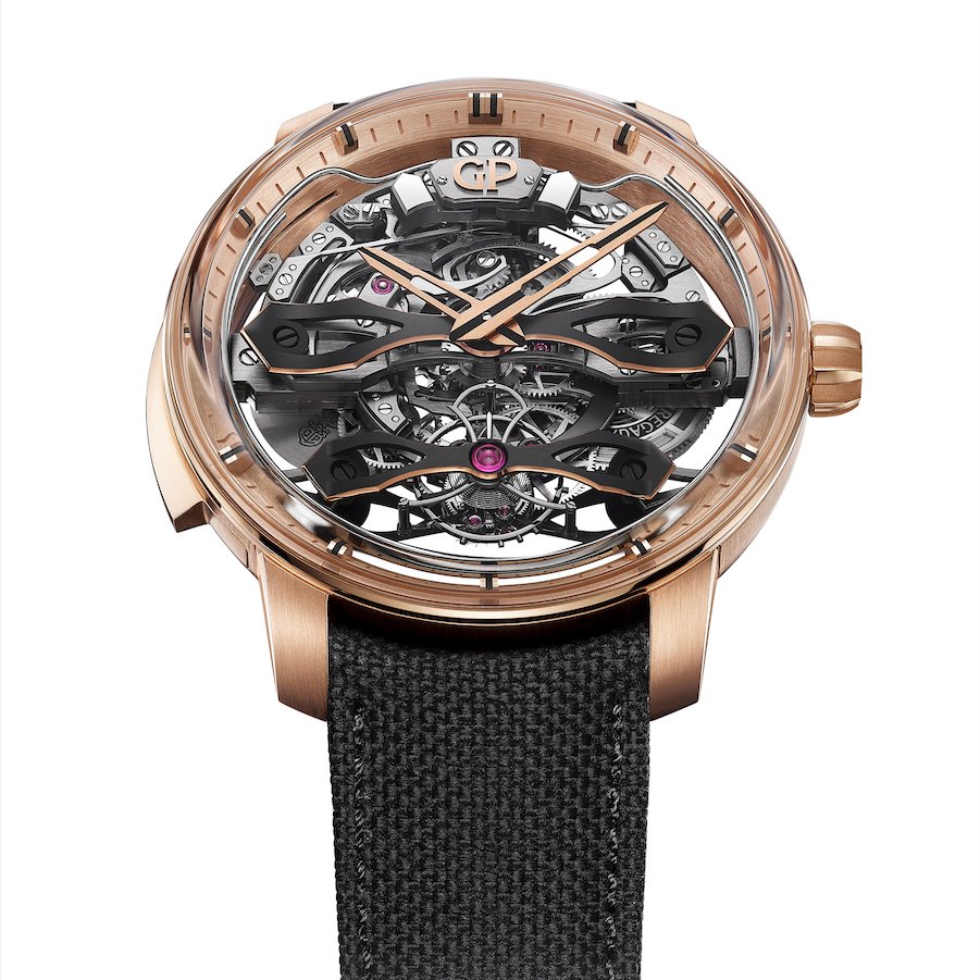 The architecture traces directly to La Esmeralda, the revolutionary pocket watch whose Three Gold Bridges debuted in the mid-1800s and earned recognition at the 1889 Paris Universal Exhibition, a piece that remains one of the most important design statements in GP's 230-plus-year history.
