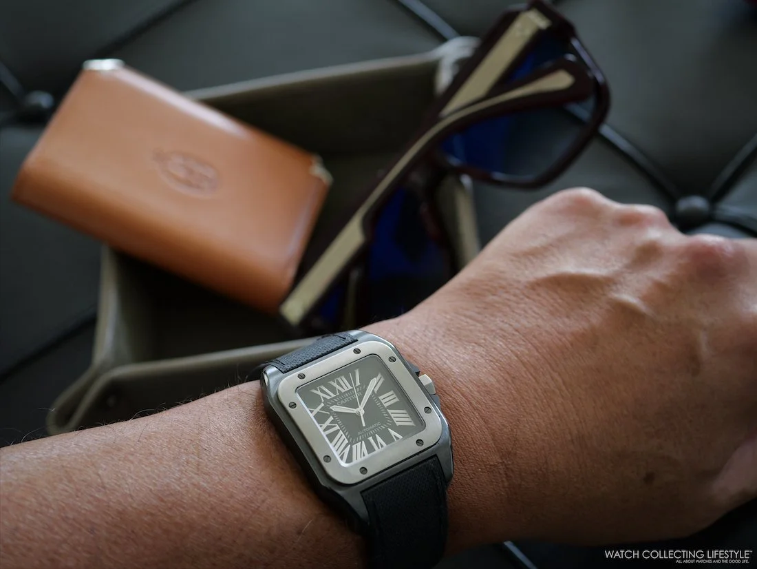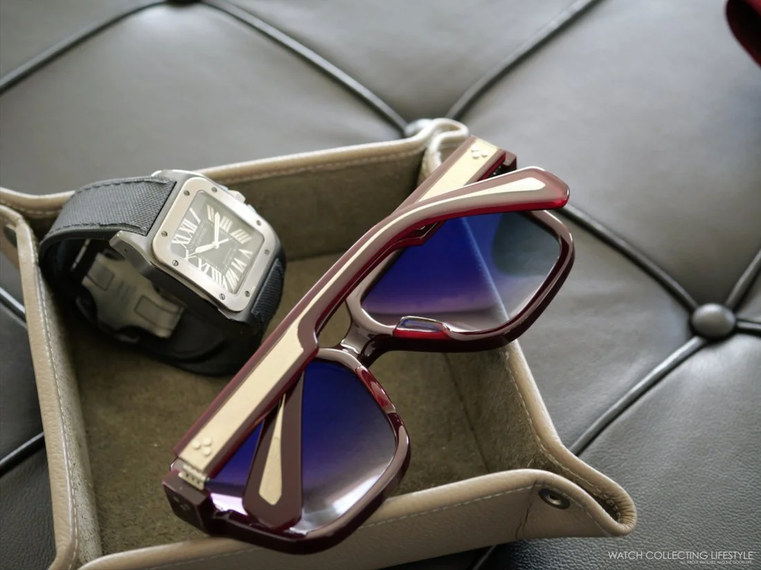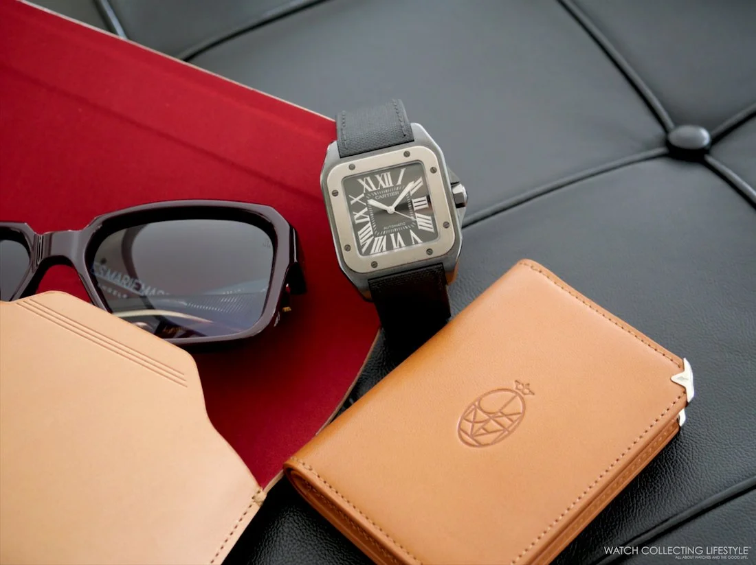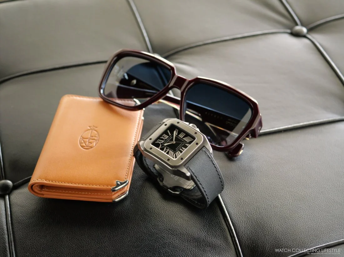 Sticker Price USD 870 for the Alfred Sunglasses and USD 650 for the Elston Trifold Wallet—Cartier Santos not included.