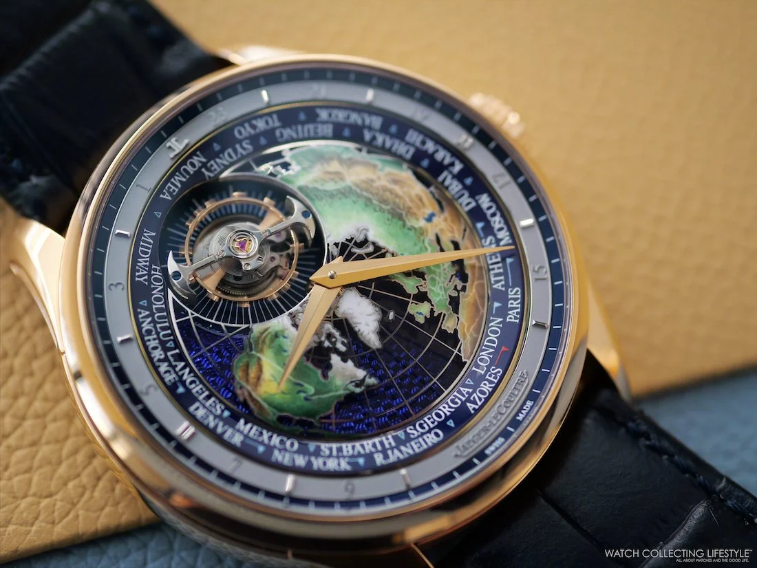 Sporting a Master Grande Tradition Calibre 948 World Time is an experience that captures both sophistication and exceptional workmanship. The timepiece rests pleasantly on the wrist, its well-distributed heft serving as a perpetual reminder of its advanced engineering. The complexity of the champlevé dial draws appreciation while effortlessly granting the wearer a sense of worldwide and time cherishing connection, in addition to the spectacle rendered by the universal flying tourbillon that rotates around the dial as the day progresses.