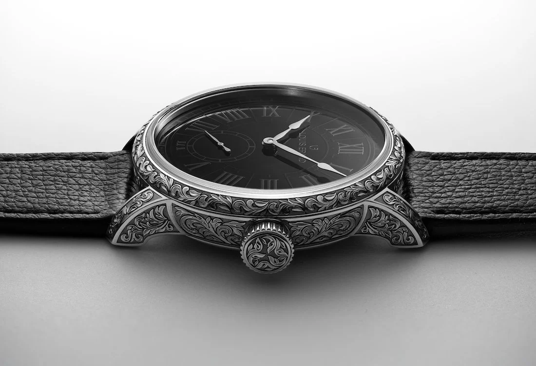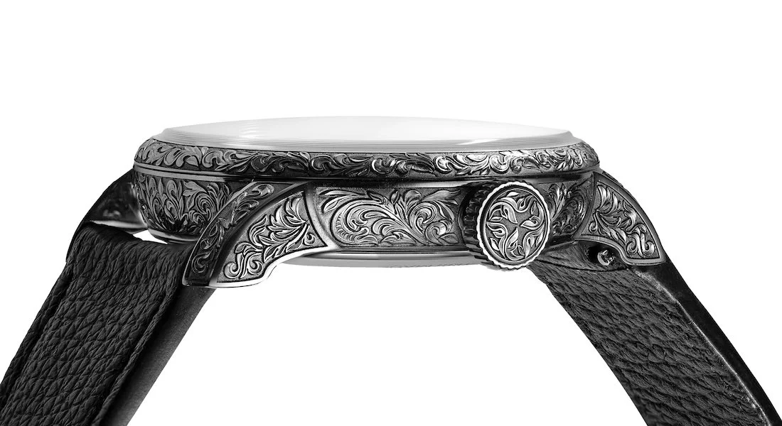 From case to crown, from bezel to buckle, every element bears the distinctive marks of hand engraving, ensuring that no two timepieces are identical. Ukrainian watchmaker and artist Maksym Shavlak brings each Gravée Main to life through traditional hand-engraving techniques. Known for reviving antique timepieces, Shavlak approaches each case as both canvas and cultural statement.