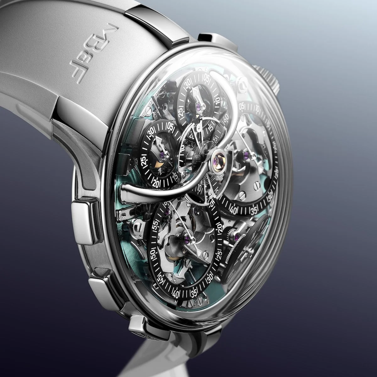 Yet McDonnell's original vision encompassed more. His prototype movement actually incorporated a flyback system, though perfecting this feature took 9 months of development, including six complete redesigns. The complexity proved too great to include alongside so many unproven innovations. That ambition found realization in 2024 with the LM Sequential Flyback in the classic Legacy Machine case, and now, arrives within the sportier EVO collection as the LM Sequential Flyback EVO, distinguished by its grade 5 titanium construction and striking aquamarine dial plate.