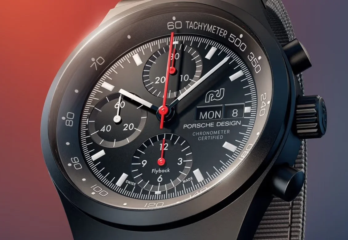 The uncoated titanium finish pays direct homage to the pivotal 1975 refinement of F.A. Porsche's original design from 1972—the world's first all-black chronograph—, and this limited edition celebrates the moment when brushed stainless steel met the iconic black dial—a combination that would later inspire highly sought-after military variants.