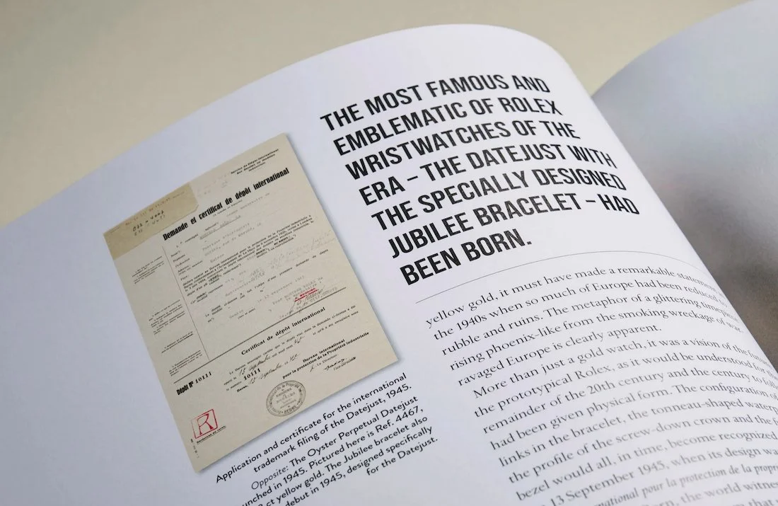 The 224-page volume traces the origins of a watch that founder Hans Wilsdorf boldly proclaimed at its 1945 debut as embodying "every discovery made to date." It was an audacious claim, but one justified mainly by the technical achievements packed into the case: the first waterproof, self-winding chronometer wristwatch featuring an instantaneous date display at 3 o'clock. The addition of the now-iconic Cyclops lens in 1953 completed what would become one of the most recognizable silhouettes in the history of horology.