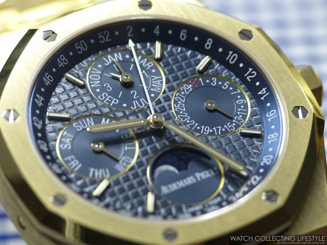 Here we have another long awaited novelty from Audemars Piguet. The Royal Oak Perpetual Calendar makes its appearance in 18K yellow gold to join the stainless steel and 18K rose gold models. Hands-on live pictures of this new watch right here. In 2016, Audemars Piguet brings the enduring lustre of yellow gold back to the forefront. Launched in 1972, the Royal Oak was the first luxury watch to treat stainless steel, and meticulously craft, polish and decorate it, like a precious metal. As the copy on the first campaign mentioned: "A Tribute to Steel" and then the following one: "Steel at the price of Gold". Using steel in such a manner was a risk, yet ultimately a game-changing triumph. The revolution it launched opened a new and extremely creative chapter for Audemars Piguet, during which it explored traditional and unconventional materials in great depth: platinum, carbon, alacrite, bronze, rubber, ceramic, titanium, tantalum, etc. Now, Audemars Piguet breaks the rules again by returning luxury watchmaking to its most elemental material: 18K yellow gold, the universal emblem of indestructible beauty, energy and light. Since man first learned how to extract it from the earth, yellow gold has not just symbolized wealth and power. It has been its source. For centuries, too, much of the alchemical magic of watchmaking has been held in its warm, eternal embrace.