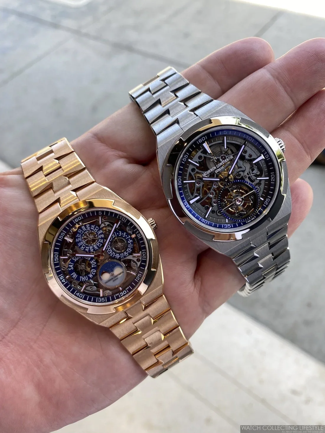 The collection evolved through subsequent generations, with a larger 42.5 mm version introduced in 2004—second generation—with JLC-based movements, and then a completely redesigned third generation—current—unveiled in 2016 featuring in-house movements and refined aesthetics, establishing the Overseas as one of Vacheron Constantin's most successful and recognizable modern collections.