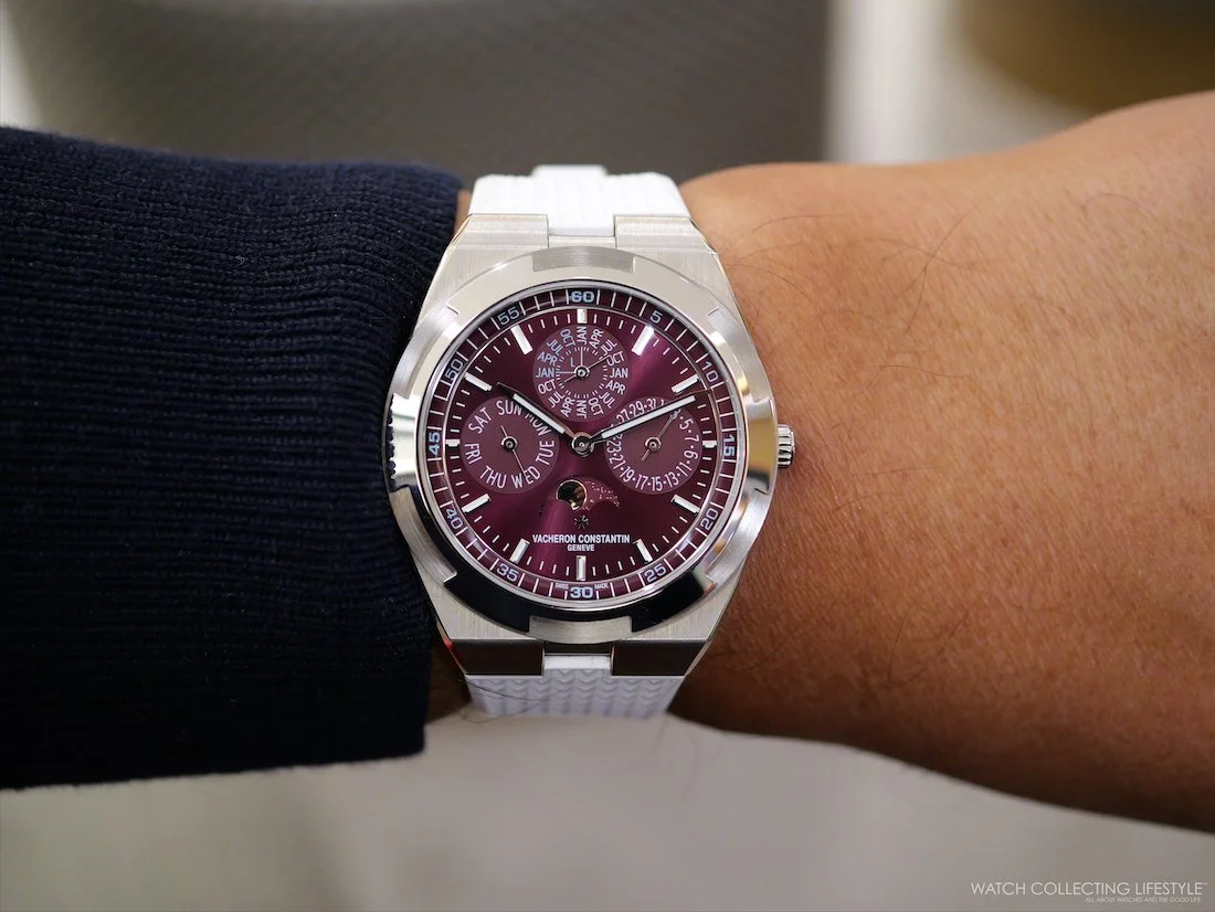 When the Vacheron Constantin Overseas Perpetual Calendar Ultra-Thin watches with gold-toned or burgundy lacquer dials were released at the end of August, we knew we had to work on separate hands-on reviews for both watches. Well, here we are, bringing you the review of the burgundy lacquer dial 18K white gold Overseas Perpetual Calendar Ultra-Thin ref. 4300V/220G-H151. Cased in a 41.5 mm 18K white gold case with a striking burgundy lacquer dial, we can confidently say this is one of the hottest releases from Vacheron Constantin within the Overseas collection in the last three years.