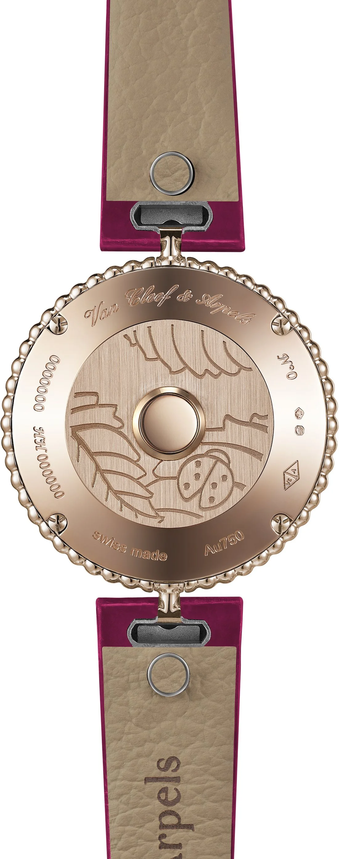 The Framboise variation, housed in 18K rose gold (ref. VCARPEV200), captures the ruby-red intensity of perfectly ripened raspberries, while the Myrtille, crafted in 18K white gold (ref. VCARPEV300), celebrates the deep, mystical hues of wild blueberries. Both variations are crowned with the maison's iconic Perlée beading—that signature emblem of timeless elegance that has become synonymous with Van Cleef & Arpels' distinctive aesthetic vocabulary.