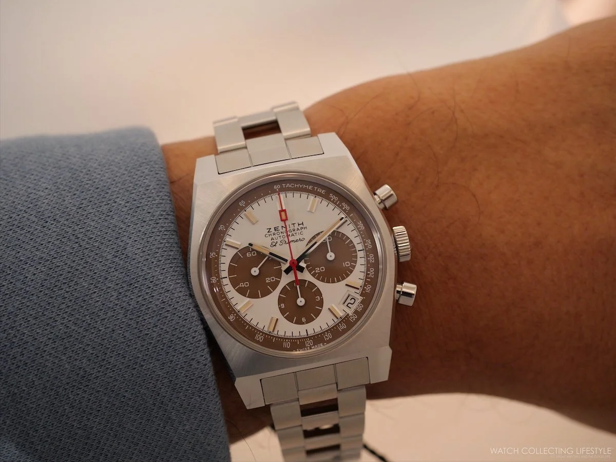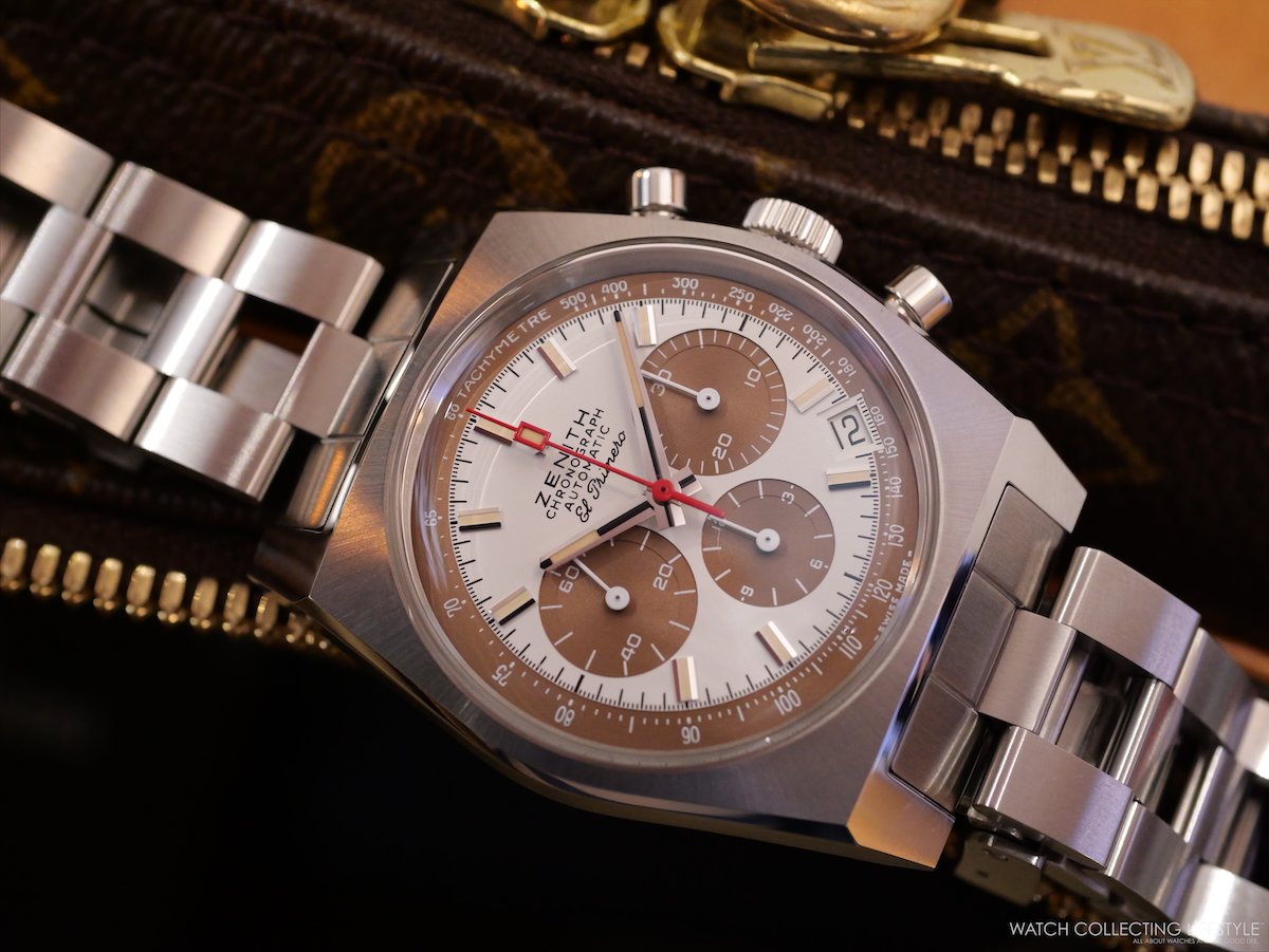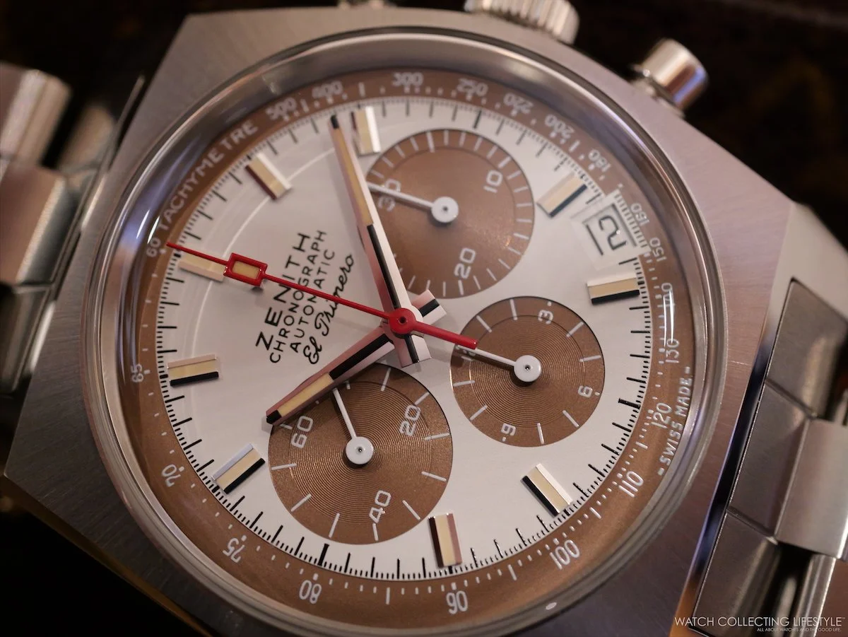 Founded in Le Locle in 1865, Zenith has built its identity around a single movement milestone: the El Primero, launched in 1969 as the world's first automatic integrated high-frequency chronograph. The A384 was among the founding references, introduced in the early 1970s, distinguished by a sharp tonneau profile, an angular case, and a visual boldness that set it apart from the round-cased chronographs of the era. The new Zenith Chronomaster Revival A384 Tropical dial revisits that reference through the lens of tropical dial collecting—translating a naturally occurring vintage phenomenon into a cohesive, controlled production aesthetic.
