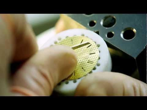 La carátula de latón es grabada por un cincel que reproduce el patron de un disco conectado a una máquina con una especie de pantógrafo. Un puntero gira a través del disco desde la periferia hacia el centro. El sistema se combina con una herramienta que forma las pequeñas líneas entre los cuadrados piramidales y tarda entre 20 y 50 minutos, dependiendo del diámetro de la carátula. Es una operación sumamente delicada y un simple salto del cincel es todo lo que se necesita para arruinar el producto final. He aquí un video cortesía de Audemars Piguet que muestra el trabajo detrás de la creación de una carátula.